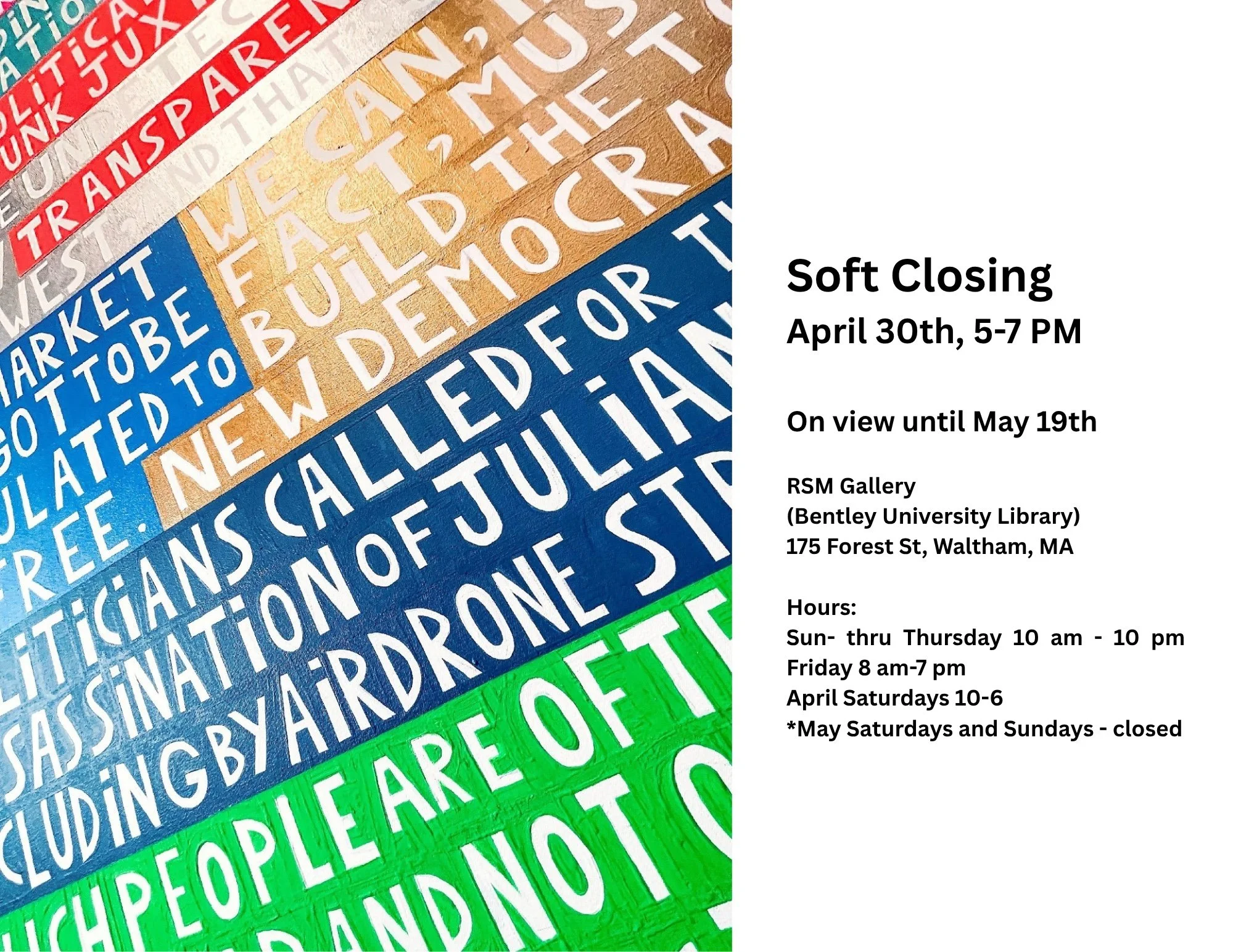 RSM Gallery (solo show): 175 Forest St, Waltham, MA