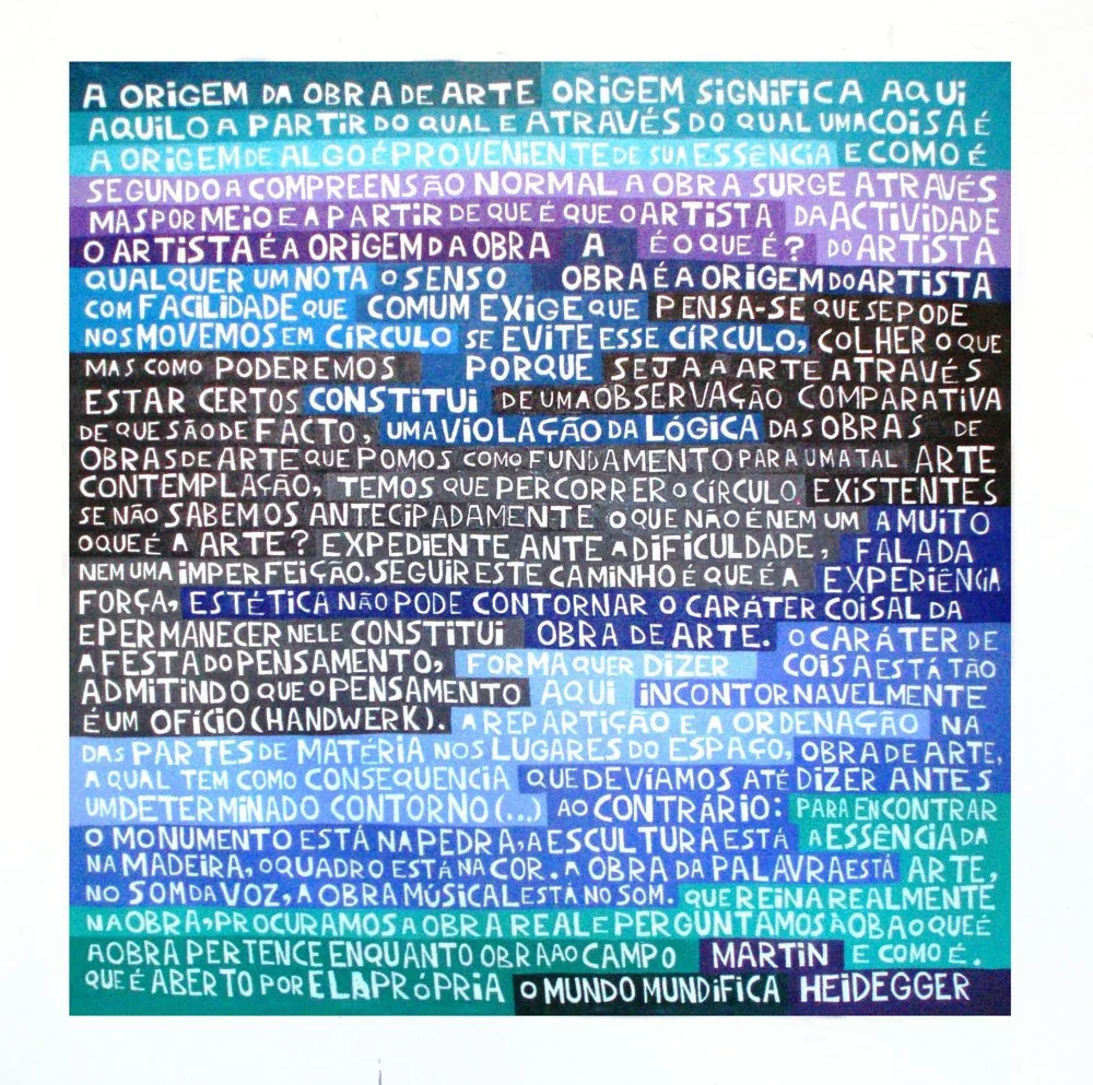 This series started early in my BFA at the Federal University of Rio, around 2004, when I was about to graduate. The course was very hands-on, and the theory did not address the issues I was interested in, so I did my own readings. I was fascinated by Philosophy and Poetry, and was eager to share these ideas with my fellow art majors (and anyone really). How to do that without tapping someone on the shoulder and reading to them? I decided to make paintings that would share the work of these authors on a monumental scale. Using bright colors to lure people’s attention. My desire was to create murals from the very beginning, but making public art does not come easy, so I started making paintings, hoping that they would lead to public spaces. I wanted to take literary works that might be too obscure/controversial, or perhaps too dissonant to mainstream consumerist culture, to the most public settings possible. Another reason to use text is a desire to let the viewers’ imagination construct their own imagery. I provide ideas, and they can illustrate them and hopefully bring them to fruition within their own internal dialog. The first iteration of this series is titled A Coney Island of the Mind, a homage to one of my favorite books by Lawrence Ferlinghetti.